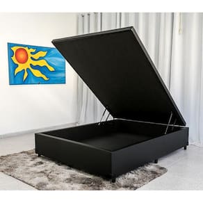 O baú Master possui um sistema de amortecimento a gás que evita o esforço na hora de abri-lo, alça de apoio para o colchão não se deslocar quando você abrir o box e pés rosqueáveis que se ajustam aos desníveis do piso e tecido antiderrapante no tampo. Seu revestimento em tecido sintético ou suede tem uma linda estética e fácil de limpar. Além de proporcionar amplo espaço de armazenamento para roupas de cama, travesseiros e outros itens, ajudando a manter seu ambiente organizado. Unindo qualidade, responsabilidade ambiental, bom gosto e o luxo do couro sintético ou do suede. Suporte de peso de 150 kg por pessoa.