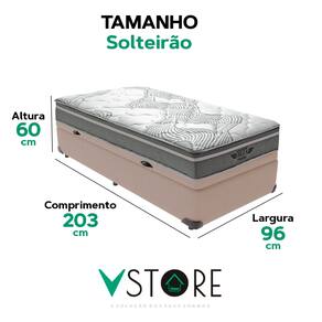 A tecnologia que a sua casa merece está na V-Store! O colchão Ibiza combina Molas Ensacadas, espuma de alta performance e sistema EPS, oferecendo suporte, conforto térmico e design moderno para noites revigorantes. Já a Base Box Baú Bravus une funcionalidade e elegância, com estrutura resistente, revestimento em tecido sintético e amplo espaço para armazenamento, ideal para otimizar o quarto com estilo..Característica Do Colchão: Modelo: IbizaMarca: V-StoreTamanho: SolteirãoDimensões: 96x22x203 (Largura x Altura x Comprimento)Conforto: intermediárioSistema: Molas EnsacadasPillow: Não se aplicaPeso Máximo recomendado: 150 kg (Por pessoa)Proteções: Antiácaro, antialérgico, antifungo, antimofoGarantia: 12 Meses (Espuma) / 10 anos ( Conjunto de Molas Ensacadas)Característica Da Base: Marca: V-StoreModelo: BravusTamanho: SolteirãoDimensões: 96x44x203 (Largura x Altura x Comprimento)Estrutura: MadeiraPeso máximo recomendado: 150 kg (Por Pessoa)Altura do Box: 38 cmAltura dos Pés: 6 cmAltura total: 44 cmGarantia: 12 Meses (Estrutura) / 3 meses (Tecido)Selo Ecologicamente CorretoAtenção:- Antes de finalizar sua compra, recomendamos que verifique se as dimensões do produto são adequadas para serem transportadas pelos elevadores, portas, escadas e corredores de sua residência. Ressaltamos que não nos responsabilizamos pelo transporte do produto por meios específicos, como escadas, guinchos ou içamentos.- É possível que hajam leves variações de cor de acordo com o dispositivo que está sendo utilizado como smartphones, computadores, monitores e outros.