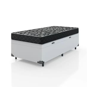 Colchão Solteiro 88 Espuma D20 - Tampo Preto 12cm.O Colchão Solteiro D20 é feito com poliester, aumentando assim a sensação de maciez, tecido com tratamento anti-ácaro, anti-mofo e anti-alérgico, espuma poliuretano densidade 20 e indicado para pessoas até 80 Kg.Informações do Colchão: 1. Tecido de revestimento: Poliéster Bordado.2. Cor: Preto.3. Modelo: Solteiro Simples.4. Dimensões:- Altura: 12cm;- Largura: 88cm;- Comprimento: 188cm.5. Peso limite: 80 kg por pessoa.6. Marca: Aloa.7. Material de estrutura: Espuma D20. 8. Tipo de conforto: Firme. 9. Garantia: 3 meses.Especificações Técnicas Baú:- Material: Madeira tratada. - Proteções: Antiácaro - Antialérgico - Antifungo – Antimofo. - Peso máximo recomendado: até 100kg (por pessoa). - Altura do baú: 40cm (35cm c/ 6cm dos pés).- Revestimento: Tecido Sintético.- Cor: Branco.- Marca: Bello Box- Quantidade de Pés: 6 pés.- Garantia: 3 meses. - Dimensões do produto (altura x largura x comprimento) Solteiro: 40x88x188cm. Importante:-As imagens ambientadas são meramente ilustrativas e podem apresentar itens que não compõe o produto.- As cores do produto podem variar de acordo com o monitor, a iluminação do ambiente ou sua percepção visual.- Verifique se o local de entrega está apto a receber o produto com as dimensões informadas.- Não nos responsabilizamos em subir pelas escadas ou içar o produto.- Não nos responsabilizamos pela montagem ou instalação do produto.