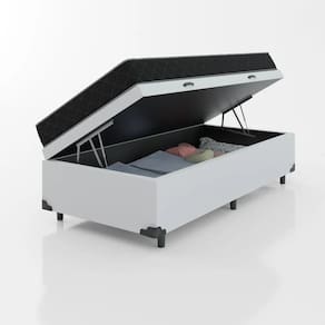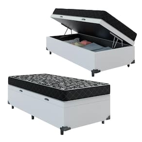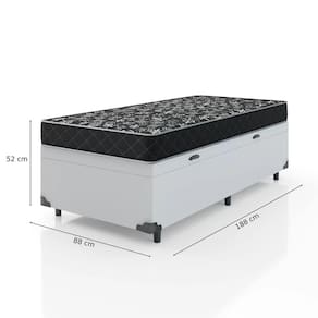 Cama Box Baú Solteiro 88 Sintético Branco com Colchão de Espuma D20 - Tampo Preto 12cm