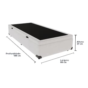 O conforto que sua casa precisa e a qualidade que você merece está na KazamixAproveite cada metro quadrado do seu dormitório com a Cama Box Baú!Projetada com madeira de reflorestamento reforçada, a Cama Box Baú é a escolha ideal para quem busca otimização de espaço e praticidade na organização do dia a dia.Com um baú generoso, ela oferece a solução perfeita para armazenar travesseiros extras, cobertores, malas e muito mais. Além disso, sua estrutura robusta suporta até 150 kg por pessoa, garantindo a sustentação ideal para o seu colchão e prolongando sua vida útil.O pistão a gás robusto proporciona uma abertura suave e segura do baú, oferecendo praticidade e resistência no uso diário. Para completar, o acabamento de alta qualidade combina perfeitamente com qualquer estilo de decoração, agregando elegância e versatilidade ao seu ambiente.Não perca tempo! Adquira agora mesmo sua Cama Box Baú e diga adeus à falta de espaço e desorganização.Marca: KazaMixModelo: BaúCor do Box: BrancoTamanho: SolteiroDimensões: 88X188X37 (Largura x Comprimento x Altura) Estrutura: MadeiraPeso máximo recomendado: 150 kg (Por Pessoa)Altura do Box: 32 cm Altura dos Pés: 5 cm Altura total: 37 cm Garantia: 03 mesesSelo Ecologicamente CorretoAtenção: Antes de finalizar sua compra, certifique-se de que as dimensões do produto sejam adequadas para serem transportadas pelos elevadores, portas, escadas e corredores de sua residência. Ressaltamos que não nos responsabilizamos pelo transporte do produto por meios específicos, como escadas, guinchos ou içamentos. Marca: KazaMix