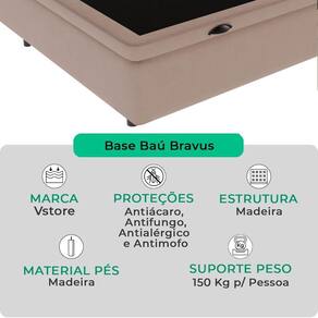 A Base Box Baú Bravus da V-Store combina praticidade e elegância, sendo a escolha perfeita para quem busca organização e estilo. Feita com madeira reflorestada e revestida com tecido sintético, ela oferece resistência e facilidade de manutenção, além de proporcionar um excelente espaço de armazenamento para travesseiros, malas e cobertores.
