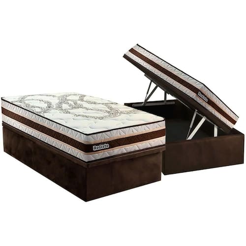Abaixo segue os produtos do KIT: Cama Box Baú Solteiro: Colchão Anatômico Paropas D45 Resiste Hotel + Base CRC Suede Brown (88x188)