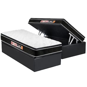 Conjunto Box Baú Solteiro: Colchão Espuma Castor D33 Black e White Air Euro Pillow + Base CRC Suede Gray(88x188)
