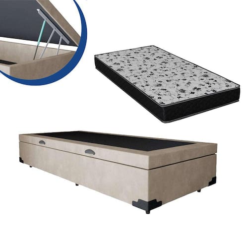 Cama Box Baú Solteiro Colchão Espuma D33 + Box Bege 53x78x188