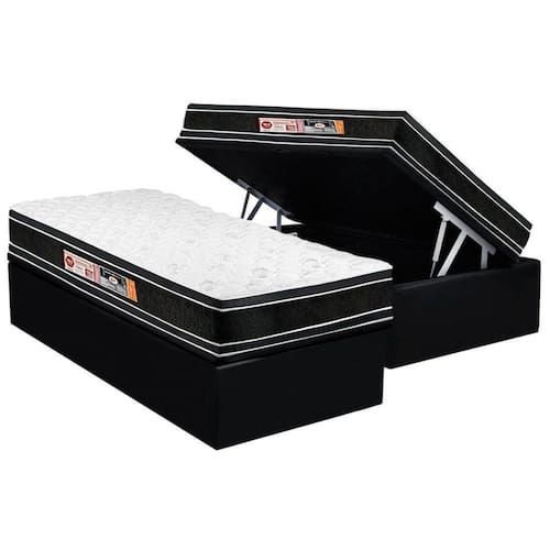 Conjunto Box Baú Solteiro: Colchão Espuma Castor D33 Black e White Double Face + Base CRC Suede Black(88x188)