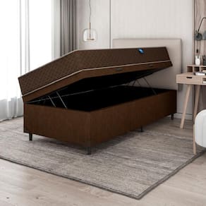 MODELO: Cama Box Baú Solteiro Marquês MARCA: Umaflex COR: Marrom REVESTIMENTO TECIDO SUPERIOR COLCHÃO: Tecido Granite 100% Poliéster REVESTIMENTO TECIDO LATERAL COLCHÃO: Lateral bordada, tecido poliéster, tecido 100% sintético. Por ser sintético não é propenso ao acúmulo de poeira e materiais orgânicos, além de ser de fácil higienização REVESTIMENTO INTERIOR COLCHÃO: Espuma D33 aliada com o poliestireno expandido que faz com que o colchão suporte até 90kg por pessoa TECIDO BOX: Suede veludo PÉS: 6 ALTURA DOS PÉS: 6 cm PESO SUPORTADO: 90kg por pessoa PESO: 41kg ITENS INCLUSOS: 1 Colchão de 0,88m e 1 box baú de 0,88m INSTRUÇÕES / CUIDADOS: Utilizar em local seco com passagem de ar, não dobrar, fazer giro quinzenalmente no sentido pés/cabeceira. GARANTIA COLCHÃO: 12 Meses pelo Fabricante GARANTIA BOX: 3 meses pelo fabricante
