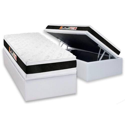 Abaixo segue os produtos do KIT: Conjunto Box Baú Solteiro: Colchão Espuma Castor D45 Black e White Air Double Face + Base CRC Courano White(88x188)