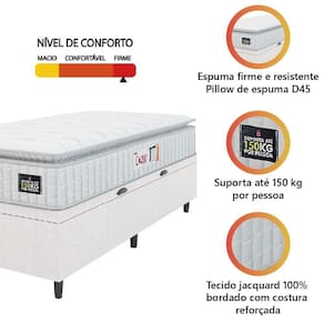 MODELO: Cama Box Baú Solteiro Colchão Espuma D45 Lazio Pillow Top 88x188x65cm Suporta Até 150 Kg Por Pessoa