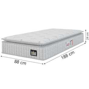 Certifique-se de tudo antes de finalizar a compra, evitando assim futuros desagrados ou imprevistos com a . MEDIDAS DO COLCHÃO:: A = 24 cm L = 88 cm P = 188 cm | MEDIDAS DO BOX:: A = 41 cm / 35 cm (sem pés) L = 88 cm P = 188 cm | ALTURA DOS PÉS:: 6 cm | PESO:: 50,41 kg | PESO SUPORTADO:: 150 kg por pessoa | MODELO:: Cama Box Baú Solteiro Colchão Espuma D45 Lazio Pillow Top 88x188x65cm Suporta Até 150 Kg Por Pessoa | MARCA COLCHÃO:: Hellen | MARCA BOX:: Prince | COR:: Branco | PISTÃO:: A gás | REVESTIMENTO SUPERIOR E LATERAL:: Tecido em Jacquard Branco que permite melhor ventilação, proporcionando conforto e sensação agradável ao toque | REVESTIMENTO INTERIOR:: Espuma D45 aliada com EPS, que permitem que o colchão suporte até 150 kg por pessoa, oferecendo conforto e estabilidade durante o sono | REVESTIMENTO INFERIOR:: Tecido antiderrapante | PILLOW TOP:: Sim, oferecendo ainda mais sensação de conforto | POSSUI EPS:: Sim | ESPUMA:: D45 | TECIDO BOX:: Linho | MATERIAL DA ESTRUTURA DO BOX:: Madeira de reflorestamento | PÉS:: 6 | MATERIAL DOS PÉS:: PVC | ITENS INCLUSOS:: 1 Colchão de 0,88m e 1 box baú de 0,88m | INSTRUÇÕES / CUIDADOS:: Utilizar em local seco com passagem de ar, não dobrar, fazer giro quinzenalmente no sentido pés/cabeceira | GARANTIA COLCHÃO:: 12 Meses | GARANTIA BOX:: 3 Meses | AVISO:: A Esplanada Móveis se responsabiliza pela dos produtos adquiridos até a porta de entrada ou portaria do endereço indicado, se a portaria do condomínio permitir, as s são efetuadas no piso térreo e é de responsabilidade do cliente. | TIPO DE CAMA: BOX | TAMANHO DA CAMA: SOLTEIRO