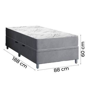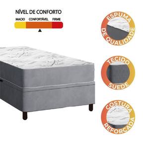 MEDIDAS:: A = 60 cm / 54 cm (sem pés) L = 88 cm P = 188 cm | MODELO:: SUEDE CINZA | MARCA COLCHÃO:: Portobel | MARCA BOX:: Prince | COR:: Cinza/Branco | REVESTIMENTO SUPERIOR:: Possui revestimento do tampo em tecido poliéster, especialmente selecionado para garantir uma sensação agradável ao toque e um acabamento sofisticado. | REVESTIMENTO LATERAL:: Tecido suede que permite melhor ventilação, proporcionando conforto térmico e toque macio | REVESTIMENTO INTERIOR:: Espuma D28 de qualidade, que faz com que o colchão suporte até 100kg por pessoa, garantindo durabilidade e conforto | POSSUI EPS:: Sim | TECIDO BOX:: Suede veludo | PÉS:: 6 | MATERIAL DOS PÉS:: Plástico | Peso:: 35kg | PESO SUPORTADO:: 100kg por pessoa | ITENS INCLUSOS:: 1 Colchão de 0,88m e 1 box baú de 0,88m | GARANTIA COLCHÃO:: 6 meses pelo Fabricante | GARANTIA BOX:: 3 meses pelo fabricante | AVISO:: A Esplanada Móveis se responsabiliza pela entrega dos produtos adquiridos até a porta de entrada ou portaria do endereço indicado, se a portaria do condomínio permitir, as entregas são efetuadas no piso térreo | ALTURA: 60 cm / 54 cm (sem pés) | TAMANHO DA CAMA: Solteiro | PRODUTO: Cama Box Solteiro Cor: Cinza