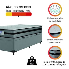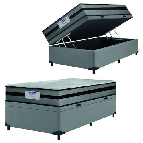 Cama Box Baú Solteiro Colchão Gazin Com Molas Ensacadas Vibe 88x188x63cm Cinza/Preto