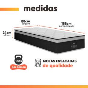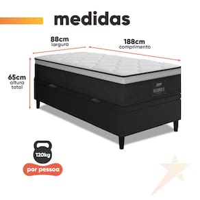MODELO: Cama Box Baú Solteiro Colchão Molas Ensacadas Maximus 88x188x65cm