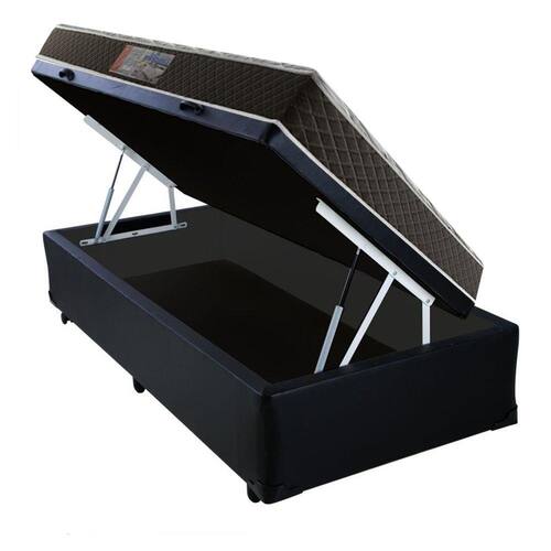 Cama Box Baú Solteiro Colchão Mola Ensacada Acolchões + Box Sintético 61x88x188 - Preto