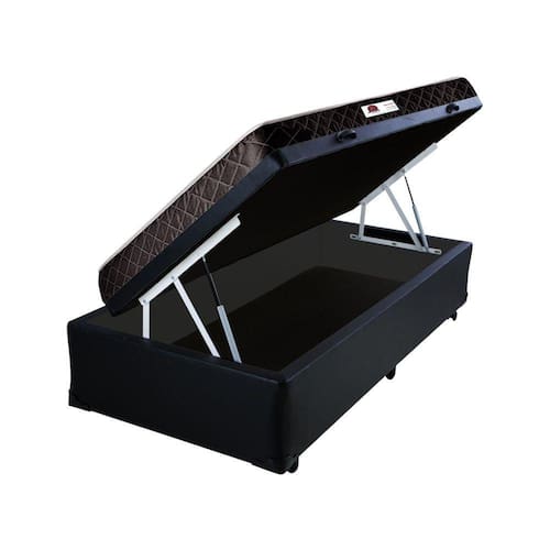 Cama Box Baú Solteiro Colchão Mola Ensacada Belos Sonhos + Box Sintético 61x88x188 - Preto