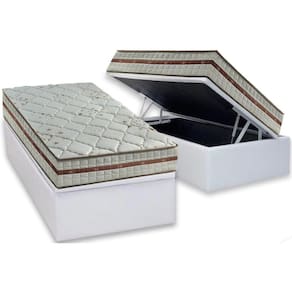 Abaixo segue os produtos do KIT: Conjunto Box Baú Solteiro: Colchão Molas Anjos MasterPocket Ensacadas Classic + Base CRC Courano White(88x188)