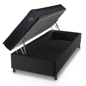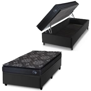 Cama Box Baú Solteiro Colchão Com Molas Ensacadas City Pillow Top 88x188x64cm Preto Hellen Preto