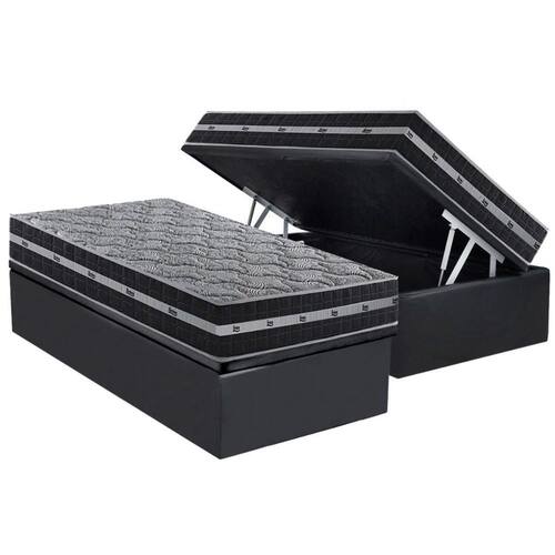 Cama Box Baú Solteiro: Colchão Molas Ensacadas D Angelis Anjos Black Grafite + Base CRC Suede Gray (88x188) - Blush