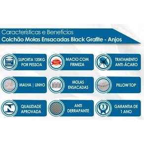Colchão Solteiro Molas Ensacadas Black Grafite (88x188x24) - D Angelis Anjos