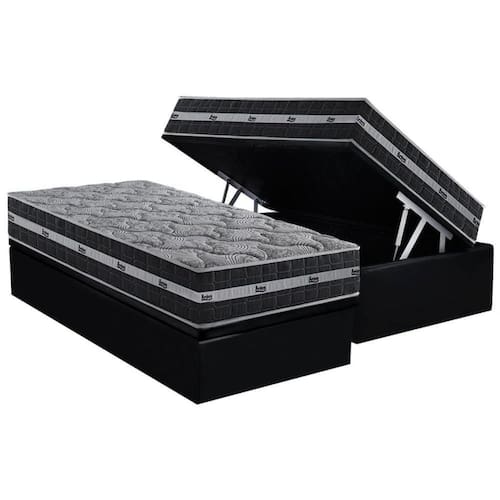 Cama Box Baú Solteiro: Colchão Molas Ensacadas D Angelis Black Graphite + Base Crc Courano Black (88x188)