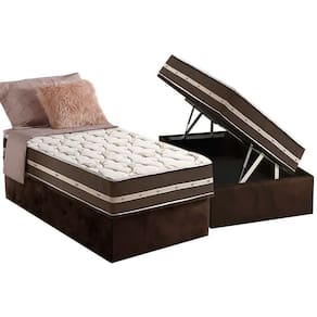 Cama Box Baú Solteiro: Colchão Molas Ensacadas D Angelis Superlastic Classic + Base Crc Suede Brown (88x188)