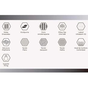 Dimensões(Cm): Comprimento(Profundidade): 188cm x Largura: 88cm x Altura: 28cm Tipo de Colchão - Molas Vantagens Extras de Colchão - Ecologicamente Correto - c/ Sistema Polyframe Tipo de Pillow - Pillow Top Americano Tecido com Tratamento do Colchão - e Bordado do Revestimento do Colchão - Contínuo Forração Revestimento do Colchão - Malha de Alta Qualidade - Jacquard Forração do Revestimento Inferior do Colchão - Antiderrapante Tecido de Revestimento da Faixa Lateral do Colchão - Jacquard - Aerado Modo de Utilização do Colchão - One Side Camadas Interna do Estofamento de Espuma do Colchão - AG Tipo de Estrutura Ortopédico do Colchão - AG Tipo de Mola do Colchão - Ensacadas Nível de Firmeza do Colchão - Macio c/ Firmeza - Macio Peso Máximo Suportado do Colchão - 110 kg Certificação de Qualidade do Colchão - Qualidade Aprovada - INMETRO - ISO 9001 Nossa Avaliação do Colchão - Qualidade Muito Boa Tempo de Garantia do Colchão - 3 meses - 12 meses