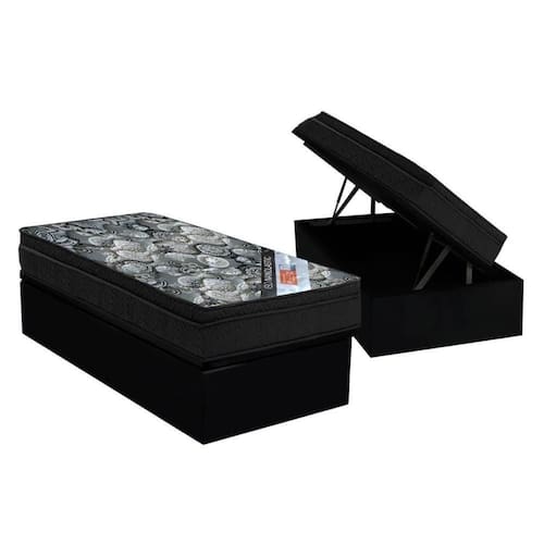 Cama Box Baú Solteiro Universal Suede Nero Black (88x188x35) - Ortobom