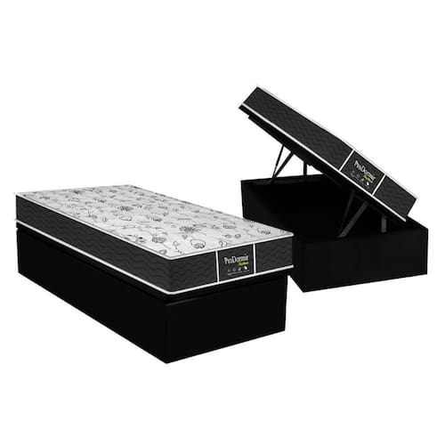 Conjunto Box Baú Solteiro: Colchão Molas Probel Prolastic ProDormir Sleep + Base CRC Courano Black(88x188)
