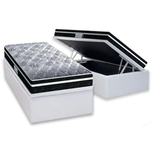 Abaixo segue os produtos do KIT: Cama Box Baú Solteiro: Colchão Anatômico Probel D33/ ProDormir Advanced Tech1500 Plus + Base CRC Courano White(88x188)