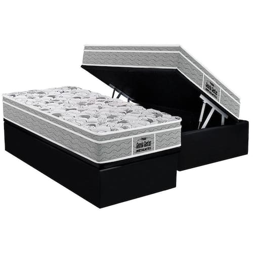 Cama Box Baú Solteiro: Colchão Ortopédico Probel D45 / Ep Guarda Costas Próextreme Plus + Base Crc Suede Black(88x188)