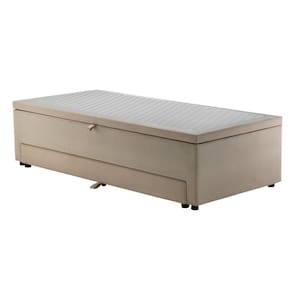 Modelo de colchão: Solteiro Para colchão de: 88 x 188 cm Matéria-prima: Madeira de Eucalipto e MDF Revestimento:: Espuma 100 poliuretano revestida com tecido 100 poliéster Tampo: Tecido Antiderrapante Levantamento do tampo: Suspenção Pneumática Cama auxiliar: Espuma D26 Respiros laterais: Sim Peso Suportado: Até 120 kg Pés: Plásticos Altura dos pés: 7 cm Sistema de montagem: É necessário fixar os pés e os pistões