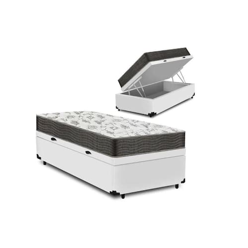 Cama Box Baú é produzida com os melhores materiais, proporcionando uma alta resistência e durabilidade prolongada. Proporcionando praticidade e conforto, tornando-se uma peça que pode ser combinada com a decoração de seu quarto deixando-o moderno e sofisticado. **As cores do produto podem variar de acordo com o monitor, a iluminação do ambiente e a sua percepção visual.** **Confira as dimensões do produto e certifique-se de que passará normalmente por supostos elevadores, portas, escadas e/ou corredores de sua residência** Características do Box: - Estrutura Interna: Estrutura em madeira 100% de Reflorestamento - Estrutura Externa: Branco - Tratamento Antiácaro: Sim - Tratamento Antialérgico: Sim - Saida de Ventilação: Sim - Ortopédico: Não - Tecido Antiderrapante: Não - Suporta até (kg): 135 Kg - Necessita Montagem: Não - Ambiente: Quarto - Altura: 35 cm - Largura: 88 cm - Profundidade: 188 cm - Possui Pés: Sim, feitos de madeira e fixos ao box - Altura dos Pés: 6 cm - Altura Interna: 27 cm - Baú: Pistão a Gás - Contém 02 puxadores, para maior facilidade na abertura - Contém 01 arco na parte de trás para o colchão não escorregar - Garantia do Fornecedor Cama: 03 meses Pistão: 06 meses Verifique nossas politicas internas para que não haja nenhuma dúvida no processo de entrega ao finalizar a compra, pois não fazemos a montagem e desmontagem do produto e/ou portas e janelas, transporte pela escada ou içamento pelo lado de fora do prédio. O Colchão com Espuma D33 é altamente resistente e confortável, proporcionando melhor sustentação e durabilidade ao produto, o tampo é bordado, que entrega uma camada extra de conforto. Para quem procura um colchão com custo e benefício, esse é ideal para toda família.