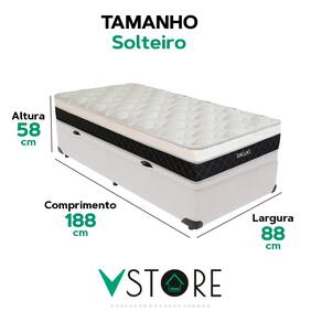 A tecnologia que a sua casa merece está na V-Store! O Conjunto Colchão Dallas e Base Box Baú Bravus combina conforto e praticidade. O colchão, com molas ensacadas, espuma D33, Euro Pillow e tecnologia EPS, oferece suporte ideal, conforto térmico, maior durabilidade e resistência. A base box baú, com estrutura reforçada e acabamento elegante, proporciona amplo espaço para armazenamento e organização do dormitório. Perfeito para quem busca qualidade, funcionalidade e sofisticação. Adquira agora e transforme suas noites de sono! Característica Do Colchão: Modelo: DallasMarca: V-StoreTamanho: SolteiroDimensões: 88x20x188 (Largura x Altura x Comprimento)Conforto: MédioSistema: Molas EnsacadasPillow: Euro PillowPeso Máximo recomendado: 150 kg (Por pessoa)Proteções: Antiácaro, antialérgico, antifungo, antimofoGarantia: 12 Meses (Espuma) / 10 anos ( Conjunto de Molas Ensacadas)Característica Da Base: Marca: V-StoreModelo: BravusTamanho: SolteiroDimensões: 88x44x188 (Largura x Altura x Comprimento)Estrutura: MadeiraPeso máximo recomendado: 150 kg (Por Pessoa)Altura do Box: 38 cmAltura dos Pés: 6 cmAltura total: 44 cmGarantia: 12 Meses (Estrutura) / 3 meses (Tecido)Selo Ecologicamente CorretoAtenção:- Antes de finalizar sua compra, recomendamos que verifique se as dimensões do produto são adequadas para serem transportadas pelos elevadores, portas, escadas e corredores de sua residência. Ressaltamos que não nos responsabilizamos pelo transporte do produto por meios específicos, como escadas, guinchos ou içamentos.- É possível que hajam leves variações de cor de acordo com o dispositivo que está sendo utilizado como smartphones, computadores, monitores e outros.