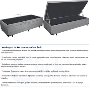 Nossa cama baú de solteiro King combina qualidade, praticidade e versatilidade de forma impecável. Feita com materiais duráveis e de alta resistência, ela garante uma longa vida útil, proporcionando segurança e conforto para você. Além disso, o design inteligente inclui um espaço de armazenamento embutido, perfeito para guardar roupas de cama, roupas ou objetos pessoais, ajudando a manter seu ambiente organizado e livre de bagunça. Essa cama é ideal para quartos pequenos, studios ou ambientes que precisam de uma solução inteligente para otimizar o espaço disponível. Sua estrutura compacta e funcional faz dela uma escolha perfeita para quem busca praticidade sem abrir mão do estilo. A praticidade é um dos nossos principais diferenciais: a cama é fácil de montar, limpar e manter, além de ajudar a aproveitar ao máximo cada metro quadrado do seu ambiente. Sua versatilidade permite que ela se encaixe em diferentes estilos de decoração, seja moderna, clássica ou contemporânea, deixando seu espaço mais bonito e funcional. Invista em uma cama baú de solteiro King e transforme seu quarto em um ambiente mais prático, organizado e cheio de estilo