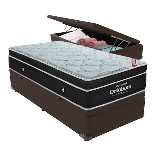 Bem-vindo(a) ao nosso catálogo! Apresentamos a você uma descrição completa sobre esse produto:O colchão Elegant com sua estrutura de molas ensacadas e espuma D26 de alta densidade, ele oferece suporte adequado para pessoas de até 150kg, tendo como garantia de máximo conforto o Pillow Euro. Uma camada a mais de aconchego!Colchão:Modelo: Elegant;Marca: Ortobom;Tamanho: Solteiro;Dimensões: 88x188x28cm; (largura x comprimento x altura)Conforto: Molas Ensacadas Espuma D26, Pillow Euro;Proteções: Antiácaro, antialérgico, antifungo, antimofo;Possui: Sistema No Turn, Fibra de bambu;Peso máximo recomendado: até 150Kg (por pessoa);Garantia: 03 meses; O sistema No Turn do Colchão Elegant torna sua manutenção muito mais prática e fácil, pois ele não precisa ser virado regularmente como os modelos tradicionais. Também é um produto sustentável. A fibra de bambu utilizada em sua composição é uma fonte renovável e amiga do meio ambiente.Qualidade Ortobom:O Elegant é produzido pela renomada marca Ortobom, conhecida por sua expertise em tecnologia do sono. Com anos de experiência no mercado, a Ortobom é reconhecida por oferecer produtos inovadores e de alta qualidade, que atendem às necessidades dos clientes mais exigentes.Base Box com Baú:Marca: KazaMix;Cor do Baú: Marrom;Revestimento da Cama: Material Sintético;Material dos pés: Madeira;Estrutura: Madeira;Abertura: Pistão a gás;Peso máximo recomendado: até 150kg de cada lado;Altura do Baú: 32cm;Altura dos pés: 5cm;Altura total: 37cm;Garantia: 03 meses;Selo Ecologicamente Correto.Invista no seu sono e experimente o conforto e a qualidade!Atenção: Antes de finalizar sua compra, certifique-se de que as dimensões do produto sejam adequadas para serem transportadas pelos elevadores, portas, escadas e corredores de sua residência. Ressaltamos que não nos responsabilizamos pelo transporte do produto por meios específicos, como escadas, guinchos ou içamentos.