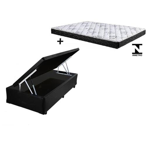 Cama Box Baú é produzida com os melhores materiais, proporcionando uma alta resistência e durabilidade prolongada. Proporcionando praticidade e conforto, tornando-se uma peça que pode ser combinada com a decoração de seu quarto deixando-o moderno e sofisticado. **As cores do produto podem variar de acordo com o monitor, a iluminação do ambiente e a sua percepção visual.** **Confira as dimensões do produto e certifique-se de que passará normalmente por supostos elevadores, portas, escadas e/ou corredores de sua residência** Características do Box: - Estrutura Interna: Estrutura em madeira 100% de Reflorestamento - Estrutura Externa: Preto - Tratamento Antiácaro: Sim - Tratamento Antialérgico: Sim - Saida de Ventilação: Sim - Ortopédico: Não - Tecido Antiderrapante: Não - Suporta até (kg): 135 Kg - Necessita Montagem: Não - Ambiente: Quarto - Altura: 35 cm - Largura: 88 cm - Profundidade: 188 cm - Possui Pés: Sim, feitos de madeira e fixos ao box - Altura dos Pés: 6 cm - Altura Interna: 27 cm - Baú: Pistão a Gás - Contém 02 puxadores, para maior facilidade na abertura - Contém 01 arco na parte de trás para o colchão não escorregar - Garantia do Fornecedor Cama: 03 meses Pistão: 06 meses Verifique nossas politicas internas para que não haja nenhuma dúvida no processo de entrega ao finalizar a compra, pois não fazemos a montagem e desmontagem do produto e/ou portas e janelas, transporte pela escada ou içamento pelo lado de fora do prédio. O Colchão com Espuma D23 é altamente resistente e confortável, proporcionando melhor sustentação e durabilidade ao produto, o tampo é bordado, que entrega uma camada extra de conforto. Para quem procura um colchão com custo e benefício, esse é ideal para toda família.