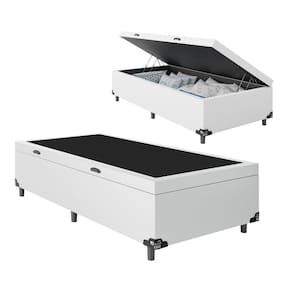 Organização e conforto no mesmo espaço! A Cama Box Baú Solteiro conta com amplo compartimento interno e abertura fácil para guardar tudo o que você precisa.