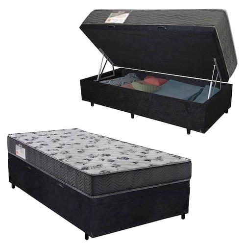 Cama Box Baú Solteiro Suede + Colchão De Espuma D33 - SerenePrime - 88cm