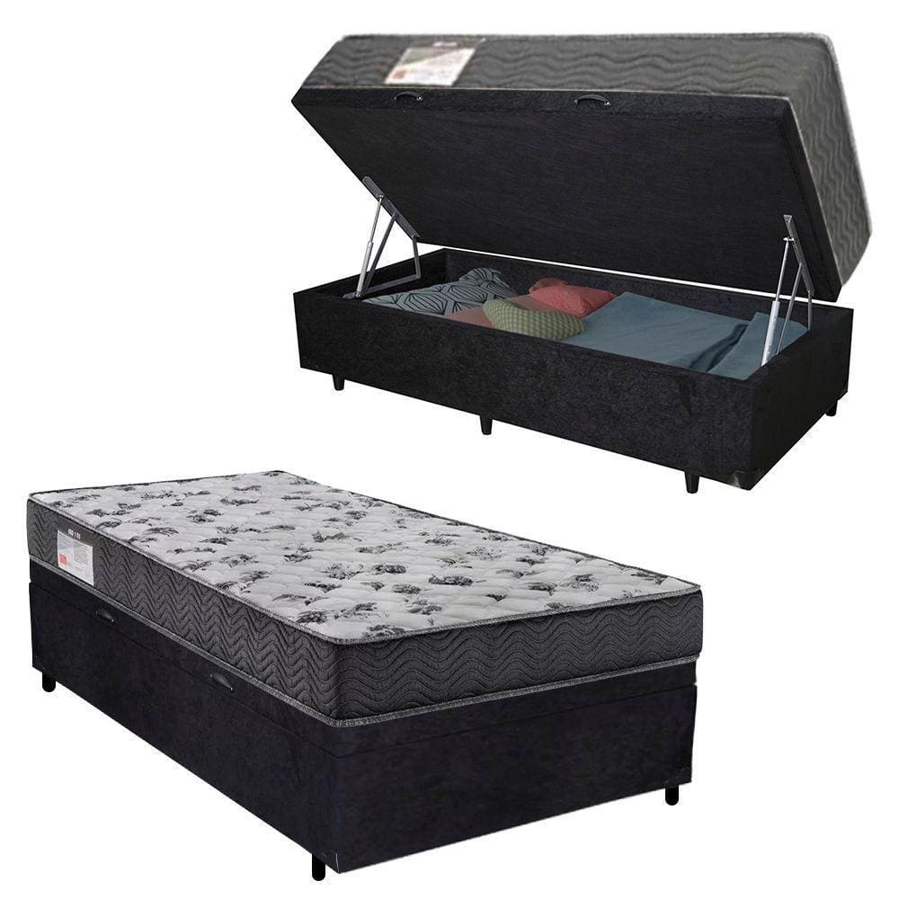 cama box bau solteiro suede preto colchao d33