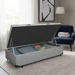 Cama Box Baú Solteiro WHC Suede Cinza 42x88x188 A Base Box é confeccionada com estrutura de madeira 100% reflorestada com tratamentos Antialérgico e Antiácaro, proporcionando alta durabilidade e resistência do produto. Possui excelente acabamento dando um ar de sofisticação e requinte.
