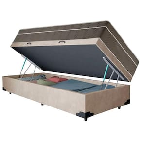 Cama Box Baú Suede Solteiro + Colchão Serene Molas Ensacadas 88x188x69 Bege