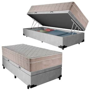 Cama Box Baú Suede Solteiro + Colchão SerenePrime Molas Ensacadas 88x188x69 - Cinza