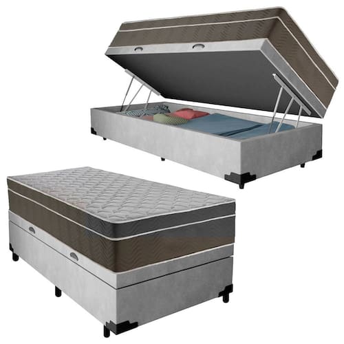 Cama Box Baú Suede Solteiro + Colchão SerenePrime Molas Ensacadas 88x188x69 - Cinza