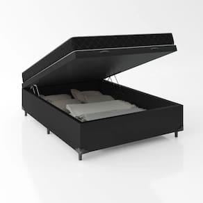 O Colchão Viúva D20 é feito com poliester, aumentando assim a sensação de maciez, tecido com tratamento anti-ácaro, anti-mofo e anti-alérgico, espuma poliuretano densidade 20 e indicado para pessoas até 80 Box Baú com Pistão tem um sistema de fácil abertura por pistões a Gás amortecedores. Proporciona para o seu quarto melhor aproveitamento de espaço, pois seu amplo baú interno é ideal para guardar objetos, roupas de cama, travesseiros , edredons , etc.... ;Especificações Técnicas da Cama Baú:Material: Madeira tratada;Proteções: , , , ;Peso máximo recomendado: até 100kg (por pessoa);Altura do baú: 41cm (35cm com 6cm dos pés);Revestimento: Tecido Sintético;Cor: Preto.Quantidade de Pés: 6 pés;Material dos pés: Plástico;Garantia: 3 meses;Tamanho: Viúva;Dimensões do produto (altura x largura x comprimento): 41x128x188cm ;Informações do Colchão: ;Tecido de revestimento: Poliéster Viúva;Dimensões:Altura: 12cm;Largura: 128cm;Comprimento: limite: 80 kg por do produto: 4,5 kg.Material de estrutura: Espuma D20. ;Tipo de conforto: Macio.Garantia: 3 meses.Importante:- As ;imagens ambientadas ;são meramente ilustrativas e podem apresentar itens que não compõe o produto.- As ;cores do produto ;podem variar de acordo com o monitor, a iluminação do ambiente ou sua percepção visual.- Verifique se o de está apto a receber o produto com as dimensões informadas.- Não nos responsabilizamos em subir pelas escadas ou içar o produto.- Não nos responsabilizamos pela montagem ou instalação do produto.