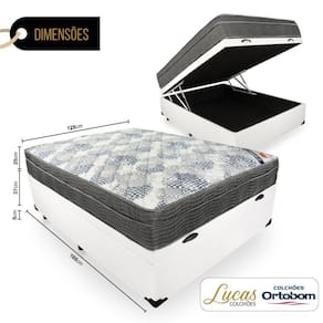 Especificações Técnicas Baú: - Marca: Lucas Colchões; - Material: Madeira tratada; - Peso máximo recomendado: até 150 Kg (por pessoa); - Altura do baú: 37cm; - Profundidade do baú: 27cm; - Altura dos pés: 5cm; - Revestimento: Material Sintético; - Garantia: 12 meses; - Dimensões do produto (largura x comprimento x altura) 128x188x42cm