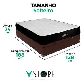A tecnologia que a sua casa merece está na V-Store! O Conjunto Colchão Orthopedic + Base Box Baú Bravus da V-Store une conforto e funcionalidade. O colchão, com espuma D33 e suporte extra firme, oferece alinhamento ideal e proteção contra ácaros, alergias e fungos. A base box baú, com estrutura resistente e espaço interno, combina organização e estilo, otimizando seu dormitório com praticidade e elegância.Característica Do Colchão: Modelo: OrthopedicMarca: V-StoreTamanho: ViúvoDimensões: 128x30x188 (Largura x Altura x Comprimento)Conforto: Extra FirmeSistema: EspumaPillow: Não se aplicaPeso Máximo recomendado: 110 kg (Por pessoa)Proteções: Antiácaro, antialérgico, antifungo, antimofoGarantia: 12 Meses (Espuma)Característica Da Base: Marca: V-StoreModelo: BravusTamanho: ViúvoDimensões: 128x44x188 (Largura x Altura x Comprimento)Estrutura: MadeiraPeso máximo recomendado: 150 kg (Por Pessoa)Altura do Box: 38 cmAltura dos Pés: 6 cmAltura total: 44 cmGarantia: 12 Meses (Estrutura) / 3 meses (Tecido)Selo Ecologicamente CorretoAtenção:- Antes de finalizar sua compra, recomendamos que verifique se as dimensões do produto são adequadas para serem transportadas pelos elevadores, portas, escadas e corredores de sua residência. Ressaltamos que não nos responsabilizamos pelo transporte do produto por meios específicos, como escadas, guinchos ou içamentos.- É possível que hajam leves variações de cor de acordo com o dispositivo que está sendo utilizado como smartphones, computadores, monitores e outros.