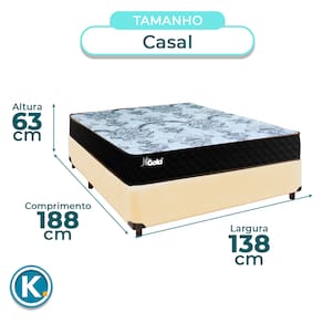 Conjunto Casal Colchão Life Gold + Cama BoxColchão Casal com 25cm de altura, ideal para conforto diário com excelente estruturaRevestido em poliéster resistente, com toque suave e fácil manutençãoSuporta até 120kg, oferecendo firmeza e segurança para diferentes perfisBase box casal ideal para otimizar o espaço do quarto com praticidadeRevestimento em Material Sintético: fácil de limpar e com visual modernoEstrutura firme e resistente com suporte para até 150kgFicha Técnica Colchão:Modelo: Life GoldMarca: ParopasTamanho: CasalTecido: PoliésterLargura: 138cmComprimento: 188cmAltura: 25cmSuporte de Peso: 120KgGarantia: 3 MesesFicha Técnica Cama Box:Modelo: UniversalMarca: NatureTamanho: CasalTecido: Material Sintético Largura: 138cmComprimento: 188cmAltura: 25cmAltura dos Pés: 13cmMaterial dos Pés: MadeiraSuporte de Peso: 150KgPeso: 27KgGarantia: 3 MesesAtenção:Antes da compra certifique-se de que o produto passa por elevadores, portas e corredores.As transportadoras não realizam entregas por escadas ou içamentos.Caso o item não caiba no elevador, a entrega será considerada concluída no térreo do prédio.A cor e tonalidade do produto pode variar de acordo com o dispositivo que o usuário está acessando.