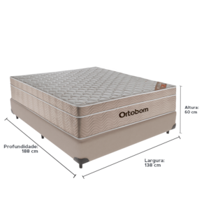O conforto que sua casa precisa e a qualidade que você merece está na Kazamix!Durma com a Qualidade e Conforto que Você Merece!O Colchão Airtech Molas ensacadas Ortobom é a escolha perfeita para quem busca conforto e suporte. Equipado com um sistema de molas ensacadas, ele oferece suporte individualizado, garantindo o alinhamento correto da coluna e reduzindo os impactos dos movimentos durante o sono. O Euro Pillow proporciona uma camada extra de maciez, garantindo um sono ainda mais revigorante.Seu revestimento em tecido de malha e matelassê, junto com a lateral em suede, proporcionam um visual sofisticado, elevando ainda mais a estética do seu dormitório e agregando elegância ao ambiente.Além disso, o colchão conta com proteção antiácaro e antialérgico, criando um ambiente de sono mais saudável e ideal para quem busca bem-estar. Produzido com materiais de alta qualidade e a confiabilidade da Ortobom, líder em tecnologia e durabilidade, ele é feito para durar, oferecendo anos de conforto e suporte.Modelo: Airtech Molas ensacadasMarca: OrtobomTamanho: CasalDimensões: 138x188X25 (Largura x Comprimento x Altura)Conforto: MacioSistema: Molas EnsacadasPillow: Euro PillowPeso Máximo recomendado: 120 kg (Por pessoa)Proteções: Antiácaro, antialérgico, antifungo, antimofoGarantia: 1 ano pelo FabricanteO conforto que sua casa precisa e a qualidade que você merece está na Kazamix!Eleve o conforto e a sofisticação do seu quarto com a Cama Box!Produzida em madeira de reflorestamento reforçada, a Cama Box combina qualidade, durabilidade e um design elegante, que confere leveza e modernidade ao seu dormitório. Sua estrutura robusta suporta até 150 kg por pessoa, garantindo a sustentação perfeita para o colchão e prolongando a vida útil do produto.Com uma altura ergonômica, ela oferece maior conforto ao deitar e levantar, enquanto o acabamento de alta qualidade se adapta a qualquer estilo de decoração, unindo praticidade e estilo.Não perca tempo! Adquira agora mesmo a sua Cama Box e transforme seu dormitório com conforto e elegância.Marca: KazaMixModelo: BoxCor do Box: BegeTamanho: CasalDimensões: 138X188X35 (Largura x Comprimento x Altura) Estrutura: MadeiraPeso máximo recomendado: 150 kg (Por Pessoa)Altura do Box: 25 cm Altura dos Pés: 10 cm Altura total: 35 cm Garantia: 03 mesesSelo Ecologicamente CorretoAtenção: Antes de finalizar sua compra, certifique-se de que as dimensões do produto sejam adequadas para serem transportadas pelos elevadores, portas, escadas e corredores de sua residência. Ressaltamos que não nos responsabilizamos pelo transporte do produto por meios específicos, como escadas, guinchos ou içamentos.