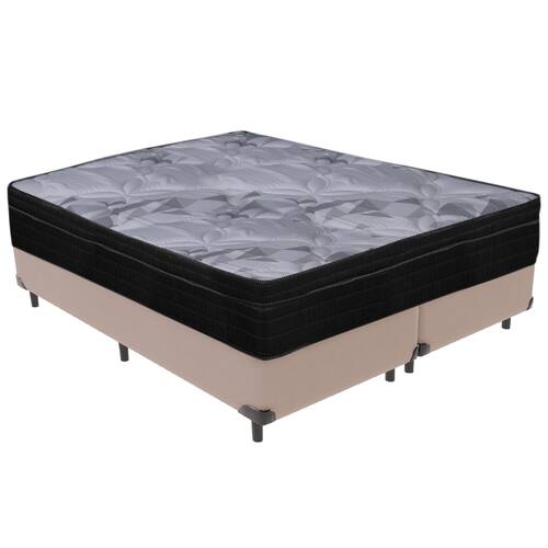 Cama Box Bege e Colchão Airtech Pampa Molas ensacadas Queen Ortobom