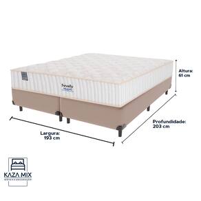 Bem-vindo(a) ao nosso catálogo! Apresentamos a você uma descrição completa sobre esse produto: A marca SealyEntre as personalidades que usam e usaram os colchões da marca Sealy estão a cantora Adele, Rainha Elizabeth II, a apresentadora Ellen DeGeneres e o jogador de basquete LeBron James. Atendendo também os hotéis da Disney, Copacabana Palace, Hard Rock Hotels e outros. Referência na fabricação de colchões de alta qualidade, a empresa foi fundada em 1881. Investindo em tecnologia de ponta e materiais premium para produzir produtos duráveis e confortáveis, é reconhecida por diversos consumidores famosos em todo o mundo. Modelo: MiamiNível de Conforto: FirmeSuporte de peso: 240kg (120kg por pessoa)Pillow Top: EuroPillowMolas: Ensacadas Altura: 26cmO sistema Polyframe reforça as bordas do colchão com espuma de alto suporte. Essa estrutura envolve toda a lateral do colchão. Por conseguinte, aumenta a área útil de sono e proporciona firmeza adicional nas laterais. Assim, garante um uso homogêneo de toda a superfície do colchão. Ademais, a Manta Acrílica protege as molas e a espuma. Este material aumenta a firmeza e estabilidade do colchão, contribuindo para sua durabilidade ao evitar o desgaste prematuro. - Proporciona uma área de sono maior e mais firme. - Previne o desgaste prematuro das molas e da espuma. - Garante um uso homogêneo da superfície do colchão. Os colchões Sealy são fabricados segundo os altos padrões dos laboratórios americanos, líderes em inovação. Além disso, esta tecnologia garante uma zona de conforto ampliada, assegurando a qualidade excepcional do produto. Além disso, o EuroPillow adiciona uma camada de maciez extra. Este elemento atua como um travesseiro gigante no topo do colchão, proporcionando uma aparência de luxo e conforto adicional. Proteção Antiácaro e AntifungoOs colchões Sealy possuem tratamento especial contra ácaros, fungos e outras bactérias. Esse tratamento é vital, especialmente em climas tropicais onde a umidade pode facilitar o crescimento de ácaros e fungos. Portanto, ele previne crises alérgicas respiratórias comuns nesses ambientes. O revestimento inferior do colchão é antiderrapante, garantindo que ele permaneça estável mesmo com movimentos intensos. Além disso, o tecido Suede na faixa lateral dá um toque macio e confere um visual elegante ao colchão. Este colchão possui molas ensacadas que oferecem suporte individualizado. Cada mola responde de forma independente, adaptando-se ao peso de cada usuário sem transferir movimento. Portanto, ele é ideal para garantir uma boa noite de sono a todos os biótipos. Além de tudo, esse produto acompanha a Cama Box da Kaza Mix e assim se torna um conjunto perfeito para o seu quarto! Marca: Kaza MixCor do Box: BegeTamanho: KingMaterial dos pés: MadeiraEstrutura: MadeiraPeso máximo recomendado: Até 150kg de cada ladoLargura: 193cmComprimento: 203cmAltura dos pés: 12cmAltura total: 42cmGarantia: 03 mesesSelo Ecologicamente CorretoAtenção: - Antes de finalizar sua compra, recomendamos que verifique se as dimensões do produto são adequadas para serem transportadas pelos elevadores, portas, escadas e corredores de sua residência. Ressaltamos que não nos responsabilizamos pelo transporte do produto por meios específicos, como escadas, guinchos ou içamentos. - É possível que hajam leves variações de cor de acordo com o dispositivo que está sendo utilizado como smartphones, computadores, monitores e outros.